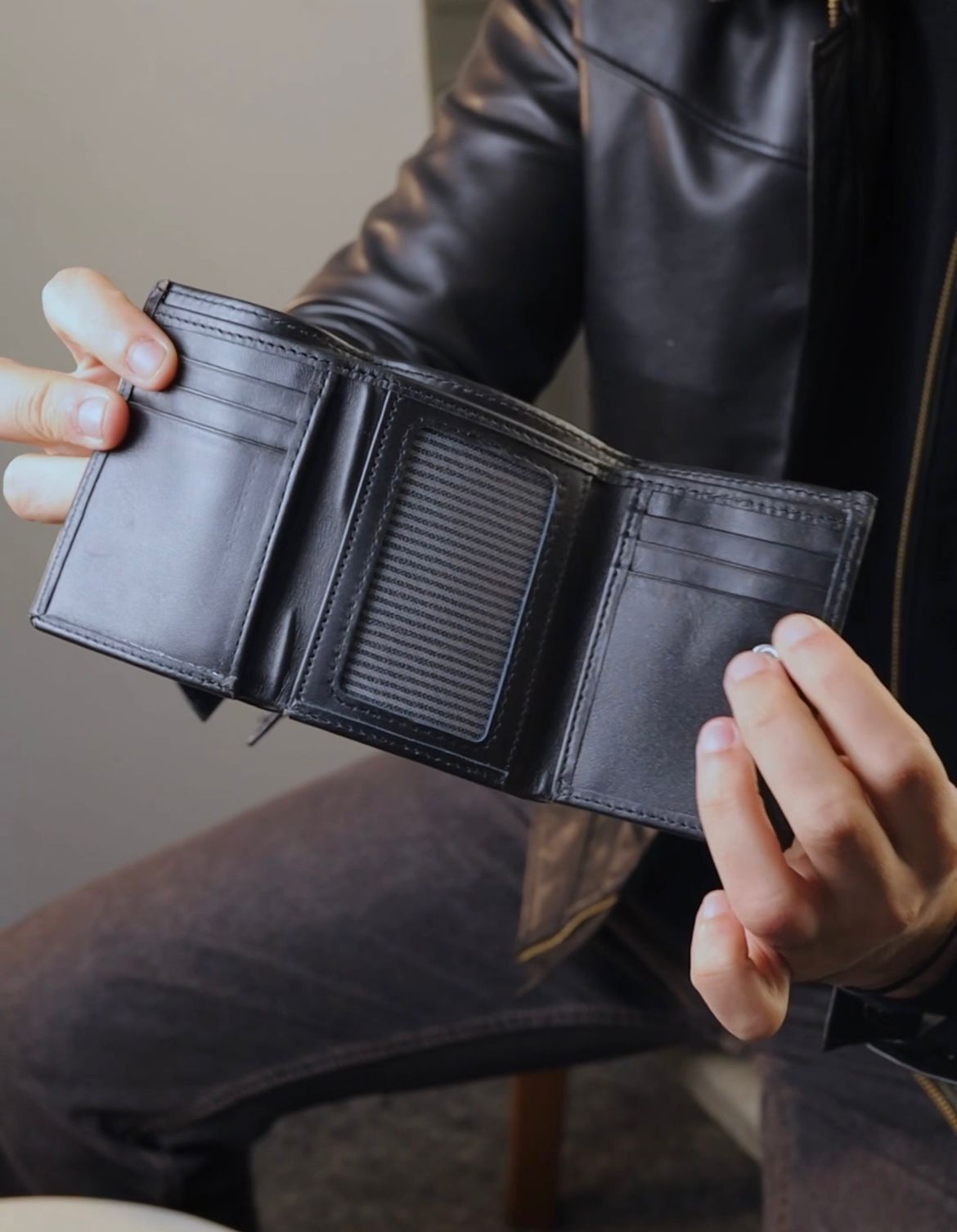 الوسوم: Trifold, اسود, جلد طبيعي, محفظة, محفظة ثلاثية