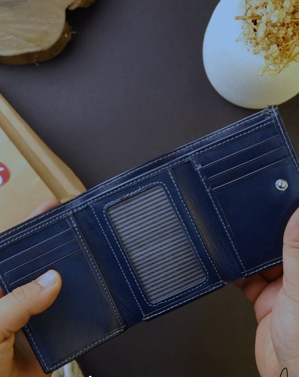 الوسوم: Trifold, جلد طبيعي, كحلي, محفظة, محفظة ثلاثية