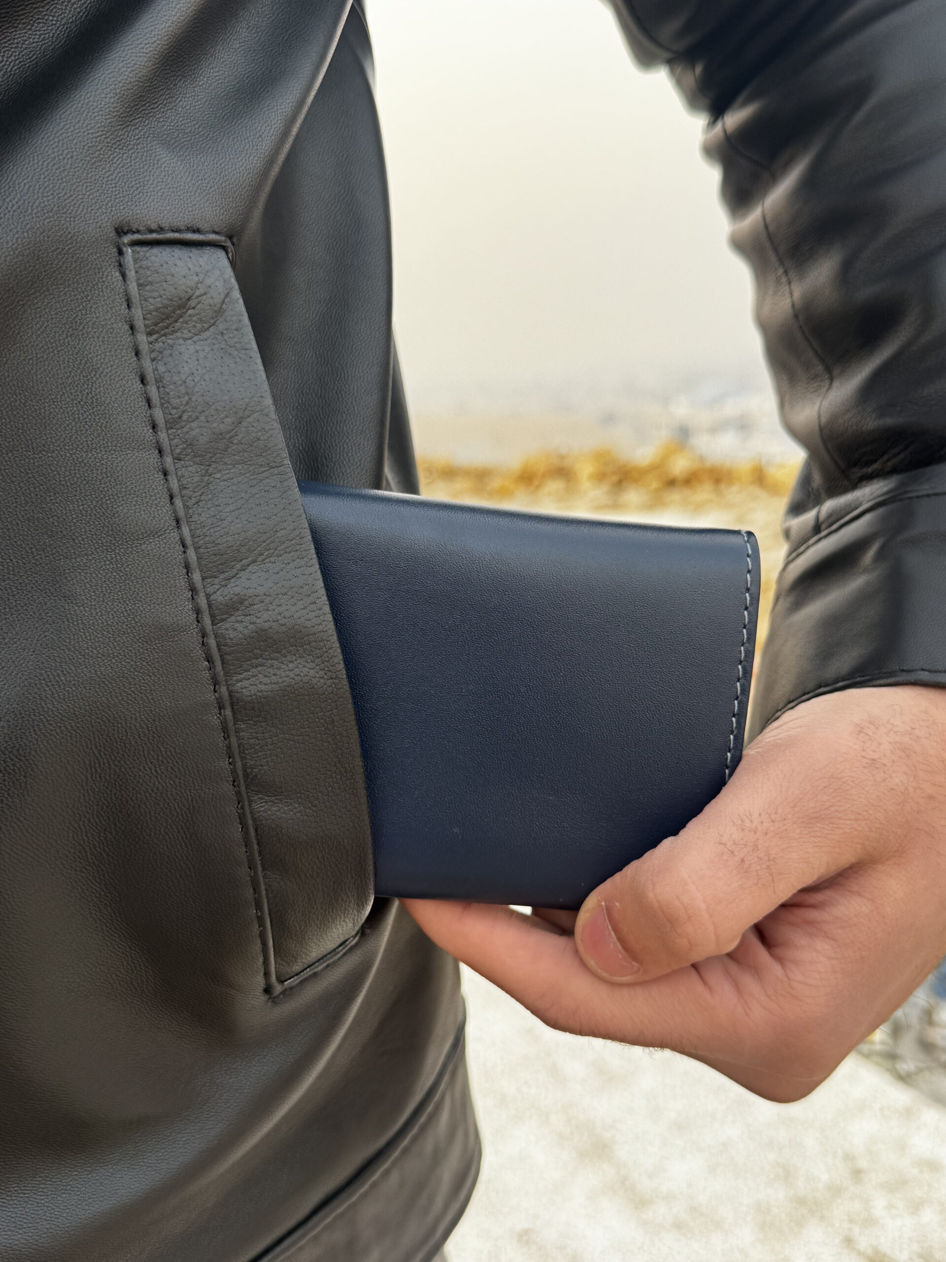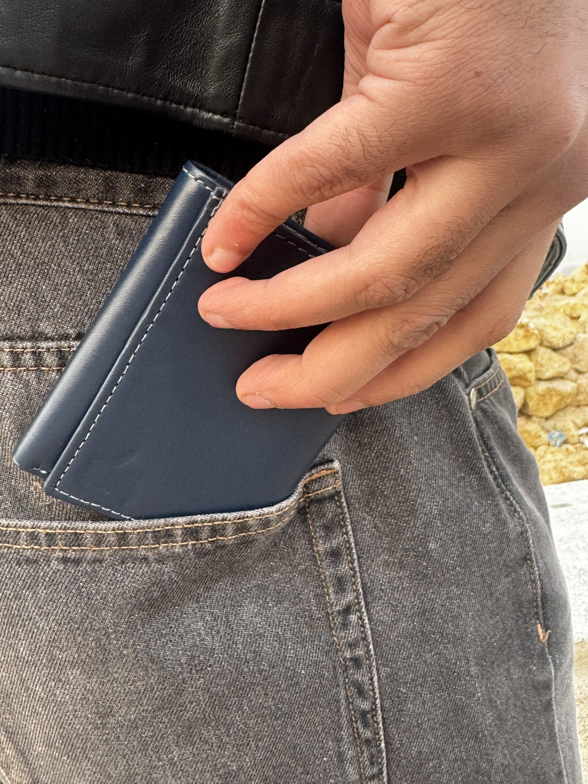 المحفظة الثلاثية ـ رجالي جلد طبيعي ـ اللون الكحلي